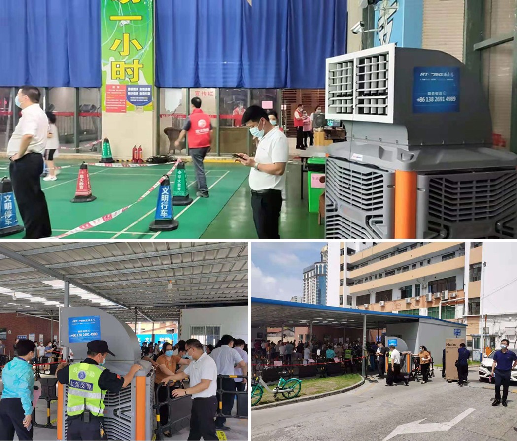 (瑞泰風(fēng)移動(dòng)式冷風(fēng)機(jī)在疫情接種點(diǎn)使用中)
